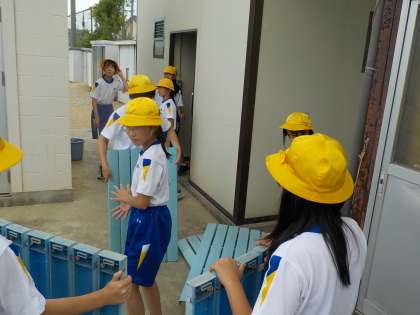プール清掃をしました。子供たちは、仲間と協力して、プールだけではなく更衣室やプールの脇に生えている雑草を抜きました。