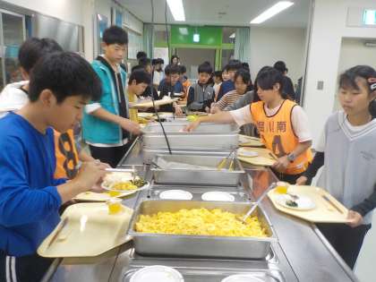 夕飯は、楽しいバイキングでした。友達と楽しい時間を過ごし、疲れも吹き飛んだ様子です。