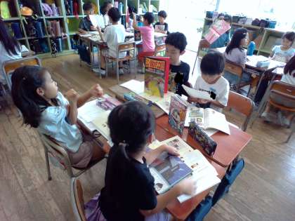 国語科の学習では、自分のお気に入りの本を友達に紹介しました。