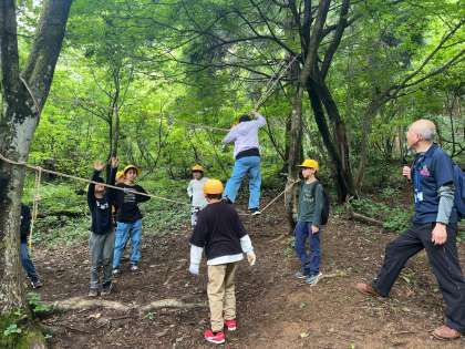1日目の活動で、森の中で遊具を作って遊ぶ「ワイルド遊び」を行いました。