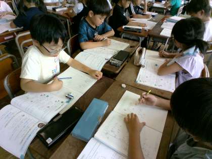 算数科「計算の工夫」の学習では、( )を使ったり、数字を入れ替えたりするなど、工夫して計算する方法を学習しました。