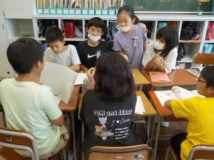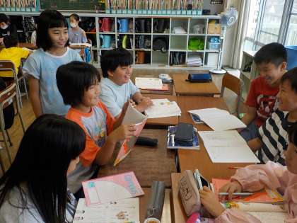 国語科の学習では、「旅行に行くなら山か海か」について話合いました。説得力のある話し方にするにはどうしたらよいかを考えながら話合いました。