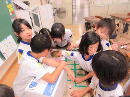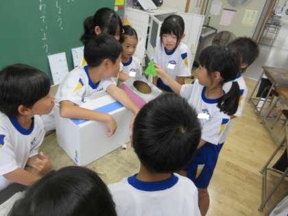 朝の会でくじびきをした係がありました。子供たちが自分たちで準備を進めたイベントが始まっています。