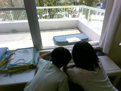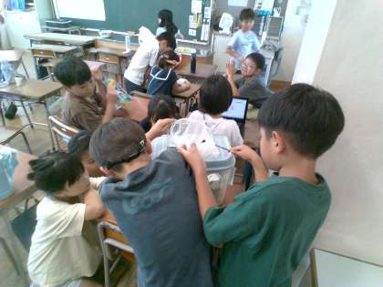 こん虫のかんさつをするために、グラウンドに出てこん虫をとりにいきました。