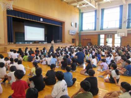 今日は、全校道徳集会がありました。先生から人権についての話や運営委員の寸劇を見て自分や相手を大切にするためにはどのようなことに気を付けて生活すればよいかについて考えました。自分や相手の人権を大切にしようとする気持ちがあふれる学校にしていきましょう。