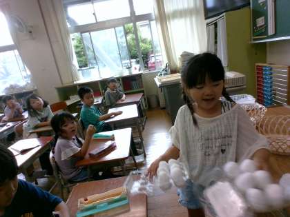 算数科では20より大きい数の数え方を考えました。自分の数え方をクラスのみんなに発表しました。