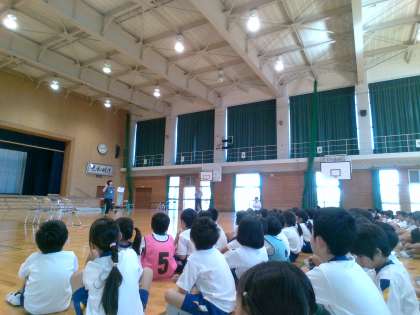 今日は、学習の発表会の演技を、校長先生たちに見ていただきました。