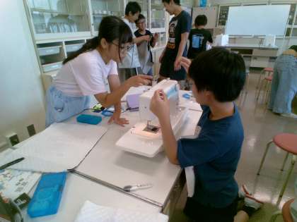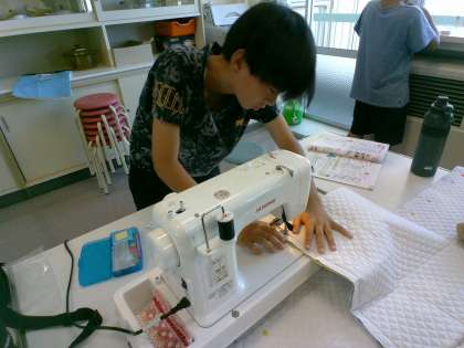 返し縫い、直線縫い等、5年生で学習した経験を生かしてスムーズに作業を進めています。