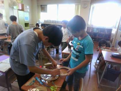 学習の発表会の準備をしています。校長先生に教えていただいたことを基に、子供たち一人ひとりがよりよい発表になるよう小道具を作ったり劇を入れたりするなど工夫しました。明日が楽しみです。