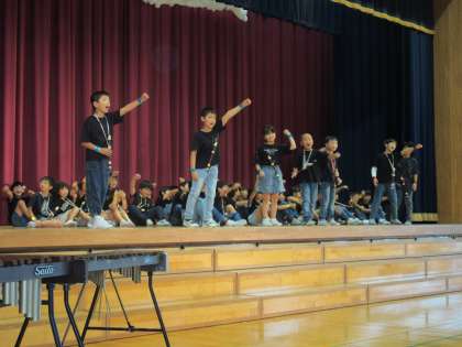 学習の発表会では、歌と合奏を発表しました。始まる前は、どきどきしていた子供たちも、頑張っている姿を見せようと元気いっぱい取り組みました。