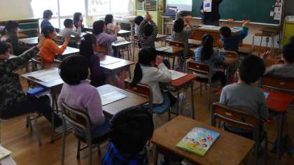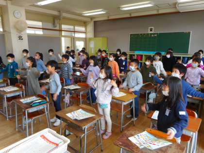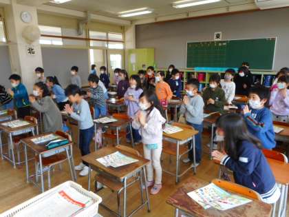 4月スタートした週に、初めての外国語活動の授業がありました。様々な国の名前や挨拶を外国語とジェスチャーを使って表現しました。振り返りでは、「楽しかった」や「次の外国語活動の時間が楽しみ」という声がたくさん聞かれました。