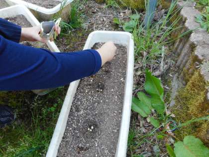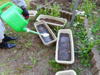 今日は、先生たちで種をまきました。何日経つと芽が出るのか楽しみです。学校が再開したら、子供たちと一緒に大切に育てていきます。