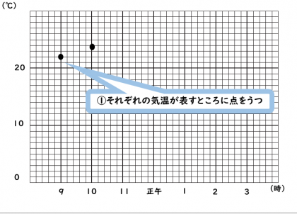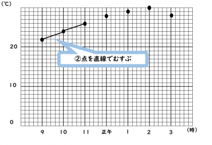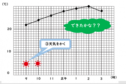 表に気温を書いたら、今度は折れ線グラフで表します。