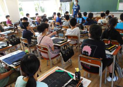 3 国語科(書写)「いつも気を付けよう」の学習では、毛筆で名前を