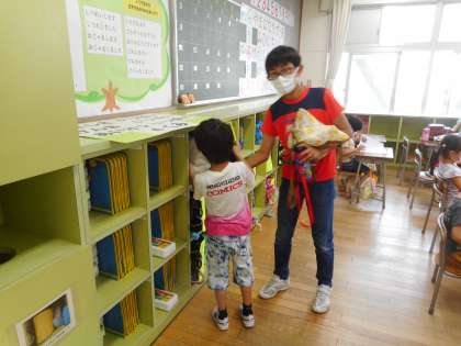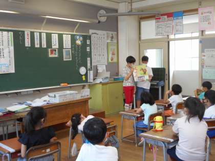 取り組みには、1年生が安心して朝のスタートをきれるように、紙芝居を読んだり、登校後の準備のサポートをしたりしていることもあります。