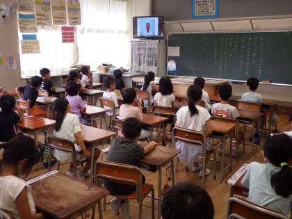 始業式では、放送から流れる校長先生の話を真剣に聞く子供たちの姿が見られました。2学期の学校生活への意気込みが感じられました。