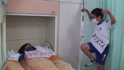 劇「みなみさんの一日」を演じた子供たちです。鬼の誘惑に負けず、メディアコントロールをすることで、規則正しい生活につながり、毎日元気に過ごせることを、劇を通して伝えました。