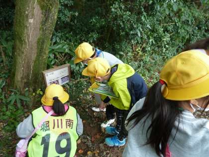 朝から曇り空で雨による中止が心配される中、森の中でのオリエンテーリングや池周辺のアスレチック等、予定していた活動をすべてやり遂げました。