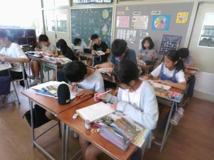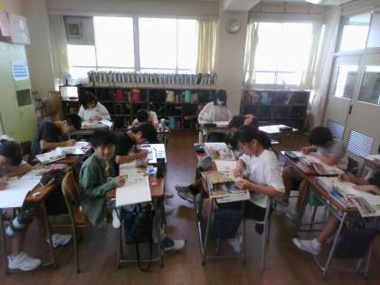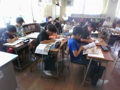 社会科では、室町幕府が開かれた時代にどのような文化が広がったのかを調べています。子ども達は、平安時代と比べながら考えを深めていました。