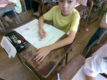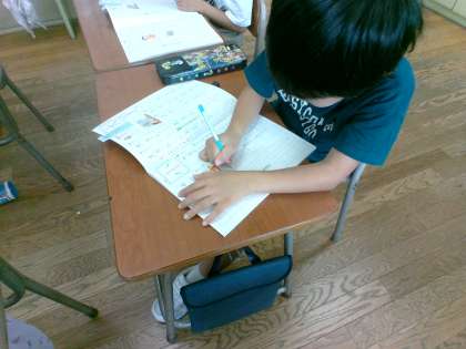 漢字の練習が始まっています。読み方や書き順などに気をつけて、集中して書いていました。