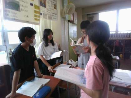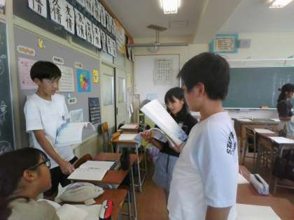 国語科では、宮沢賢治の「やまなし」を学習をしています。グループごとに分かれて読み進めました。