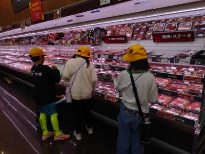 社会科の授業で「お店で働く人」を学習しています。実際にスーパーへ行き、普段は見れないバックヤードを見たり、お店の人からお話を聞いたりしました。教科書だけでは分からない貴重なお話が聞けましたね。