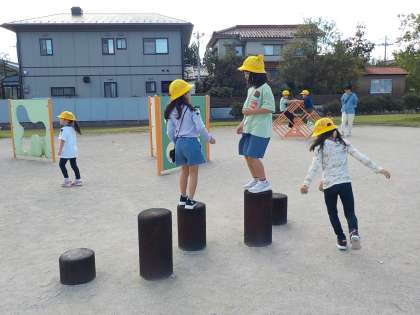 校外学習では歩いて朝菜町公園に行きました。秋のものを見つけたり、遊具で遊んだりして楽しく過ごしました。