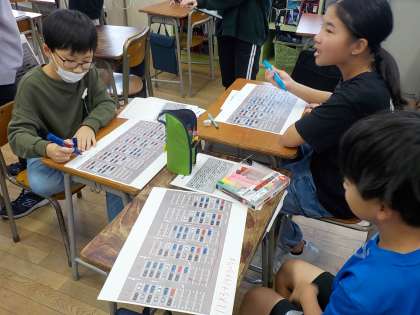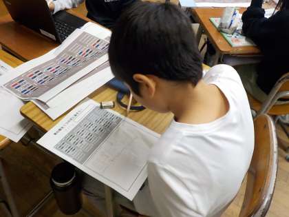 算数の計算のきまりの学習では、車の台数を一つの式に表す方法を考えました。グループで協力しながら問題に取り組みました。