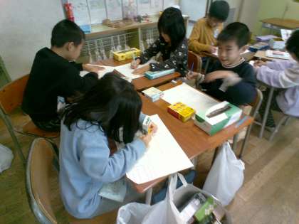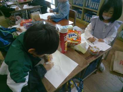 はこのかたちをうつしとって、くふうして絵をかきました。