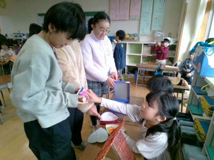今日は、子供たちが準備していたおもちゃランドを開店しました。1学期に5年生に遊びに招待してもらってから、ずっと「5年生にもなにかしたいね」と言っていた2年生。今日、念願かなって、5年生にたくさん遊びに来てもらいました。明日も開催されます。