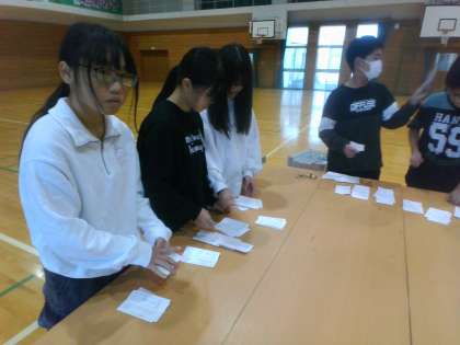 投票後は開票作業を行い、結果を発表しました。自分が選んだ候補者が選ばれなくても、自分の考えを反映させようと、政治に関心をもつことが大切だと学びました。