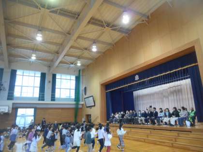 今日の感謝の集いでは、読み聞かせ会や旗持ち当番のボランティアの方々にダンスや演奏などを披露して、日頃の感謝の気持ちを伝えました。2年生は全員で、ジャンボリミッキーを踊り、感謝の言葉を伝えました。また、地域のボランティアの皆様、これからもよろしくお願いします。