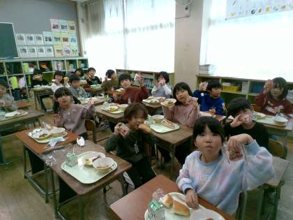昨日の給食は選択献立でした。自分の選んだメニューを美味しくいただきました。