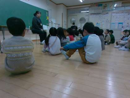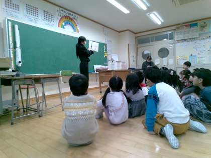 富山市立図書館堀川南分館から、お二人の方が来校されて、子供たちにストーリーテリングとブックトークをしてくださいました。楽しいお話の数々に、子供たちは引き込まれていました。