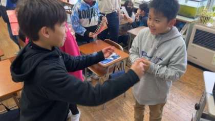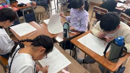 国語科では、テーマについての討論をしたり、意見文を書いて読み合ったりしました。