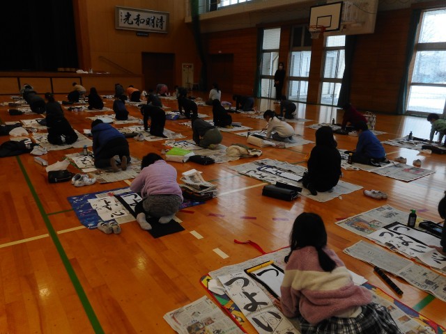 今日は始業式の後に書き初め大会がありました。素晴らしい集中力で書けましたね。
