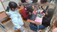 書き初め大会では、集中して「あさ日」の3文字に向き合っていました。