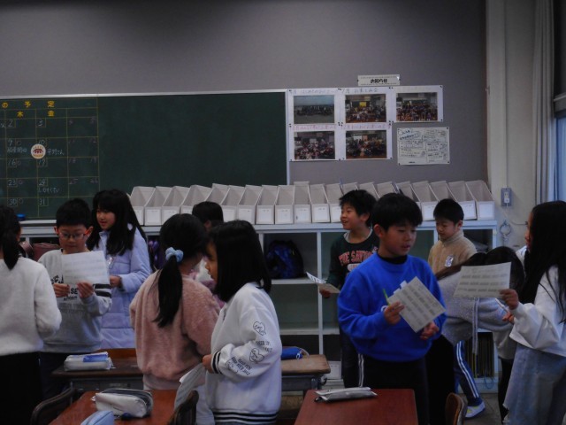 友達と交流しながら、冬休みに楽しんだことや思い出を話しています。