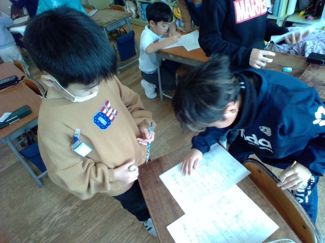 学級活動の時間に、冬休みの生活をいかした、「冬休みビンゴ」をして楽しく活動しました。