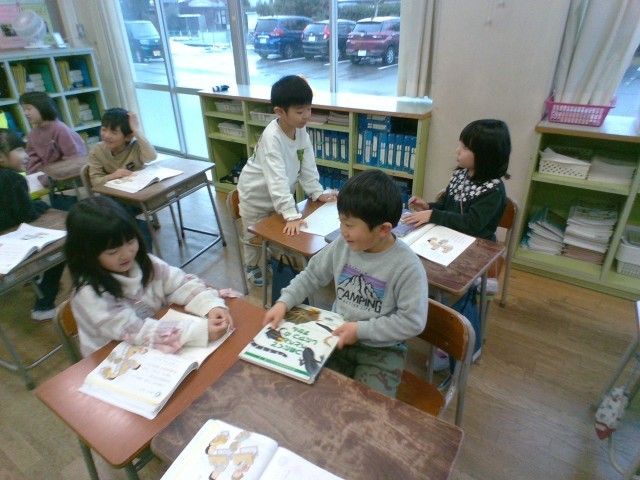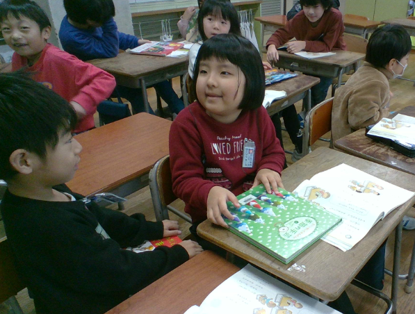 ペアの友達と自分のお気に入りの本について伝え合いました。