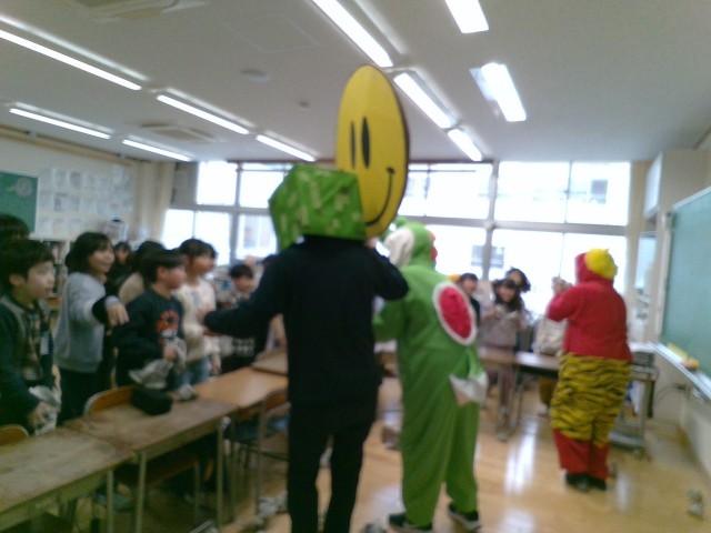 雪がたくさん降る中登校した子供たちですが、元気いっぱい豆を投げることができました。
