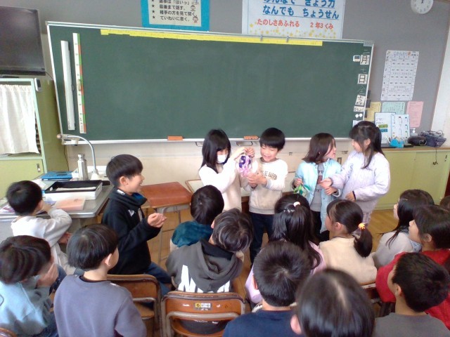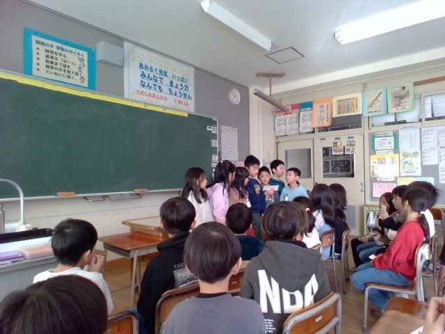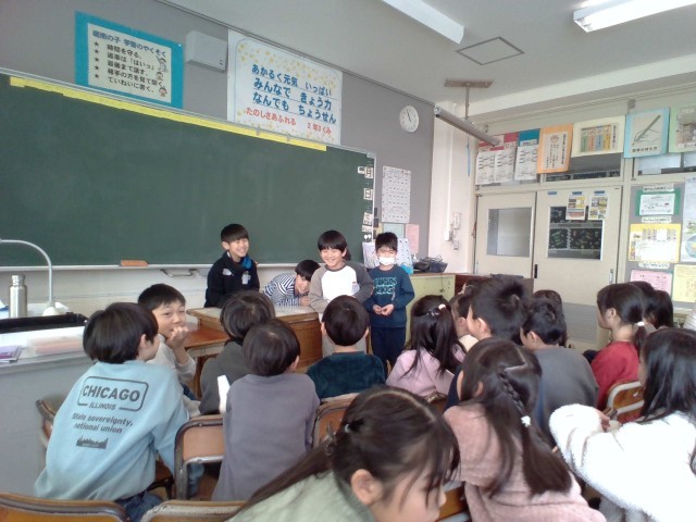 今日は、3学期初めての係発表会をしました。係ごとに考えた出し物をして楽しみました。