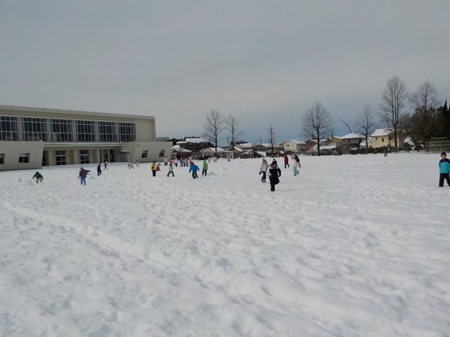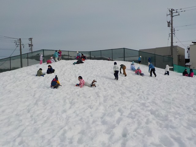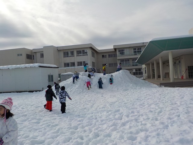 生活科の雪遊びでは、雪だるまを作ったり、雪山をすべったりしました。子供たちは、雪をめいいっぱい楽しんでる様子でした。
