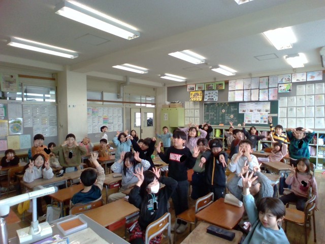 指でその数を表しました。一人一人の「4」が工夫してあって可愛いですね。