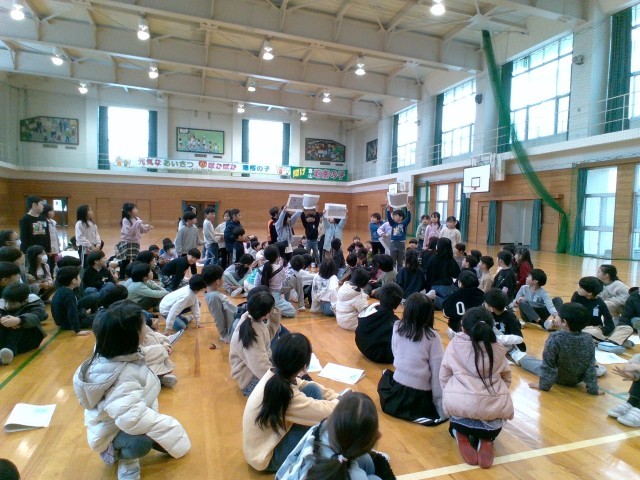 3月4日にある卒業お祝い集会に向けて、学年練習をしました。