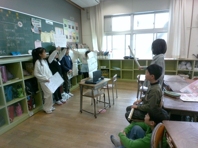 2学期に発表したものをさらに改善して、他のクラスと発表会をしました。