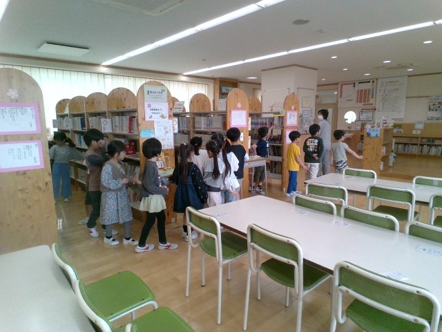 本の借り方や、図書室でのルールなどを学習しました。自分の好きな本を2冊選んで借りました。