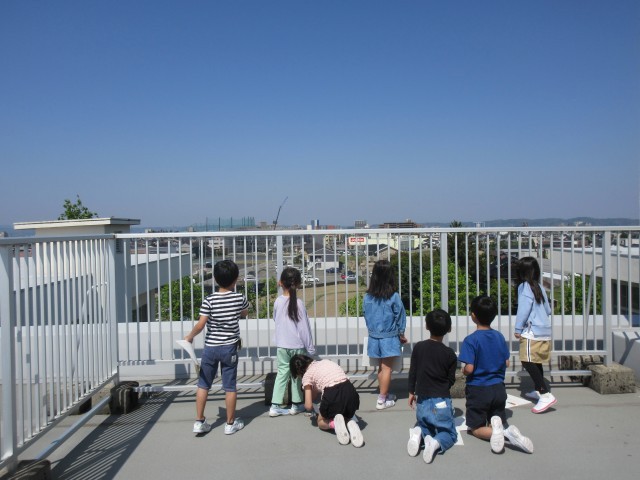 3年生の社会科では学校の周りの様子について学んでいます。そこで、屋上に出て校区の様子を調べました。方位磁針を片手に方位を確認しながら「北側にはお店がいっぱいだね」「西側には田んぼがあるよ」と気付いたことを話しながらメモをとる子供たち。やはり、本物を見ると新たな発見や感動があるようです。このような体験活動を大切にしながら学習を進めていきます。