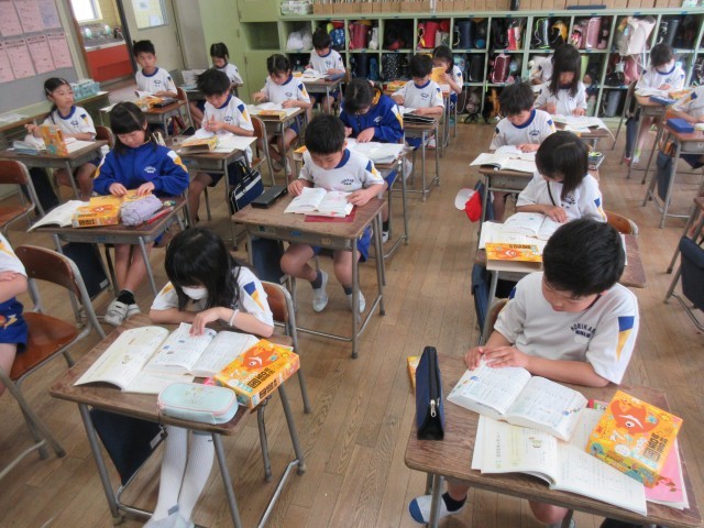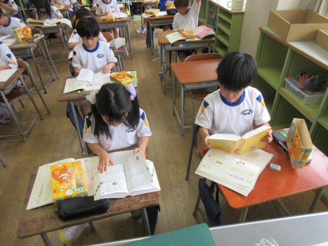 3年生の国語では国語辞典の使い方を学びます。初めて触れる子も多く、興味津々で辞書を引く子供たちです。