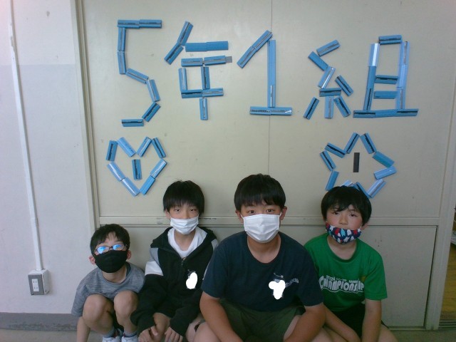 掲示を貼り替えるために、磁石を置いていたら、男子たちが文字を作っていました。